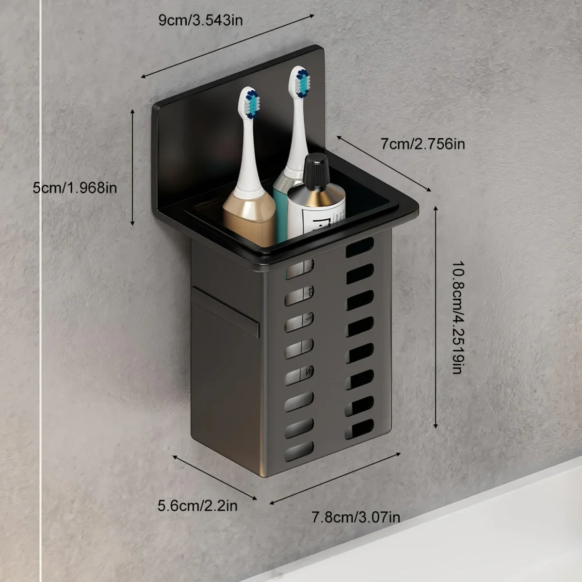Het Zwart Cosmetisch Rek is een praktische oplossing voor het opbergen van je cosmetica of keukenaccessoires zonder dat je hoeft te boren. Dankzij het boorvrije ontwerp blijft je muur onbeschadigd en geniet je van een opgeruimde omgeving. Het rek is eenvoudig te monteren en heeft een drainagefunctie om vochtophoping te voorkomen.