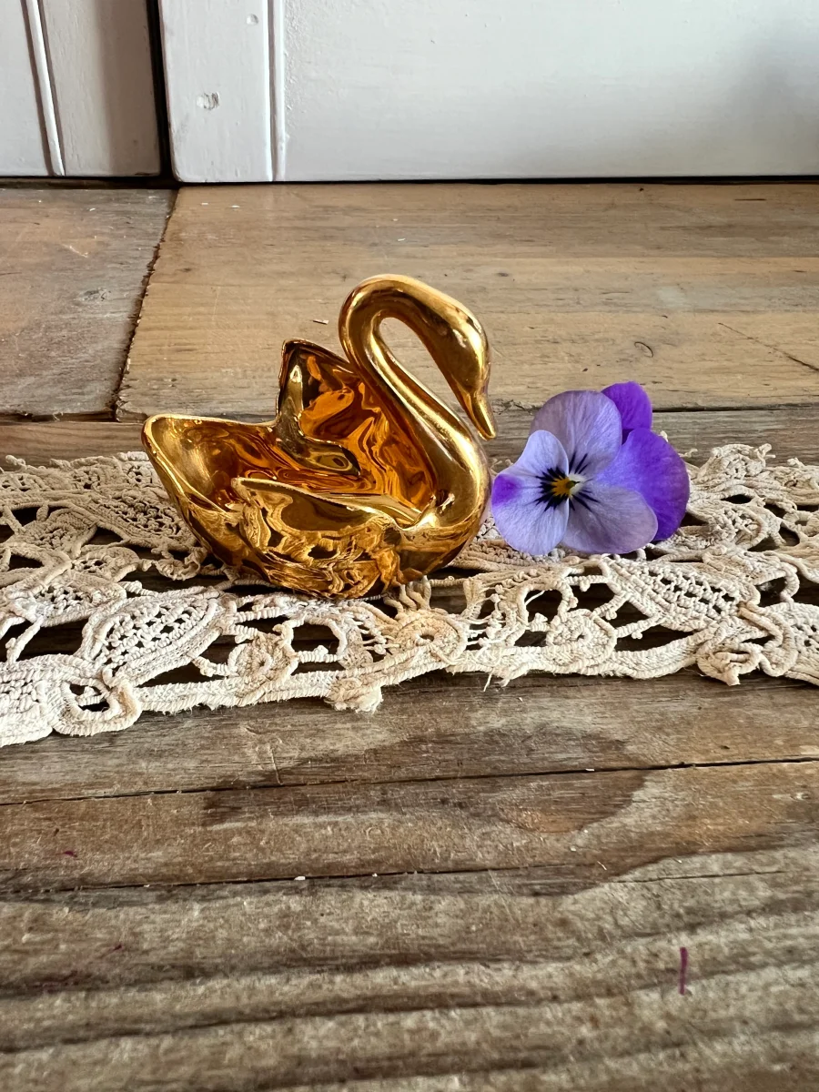 Zoutvaatje goudkleurige zwaan Limoges porselein