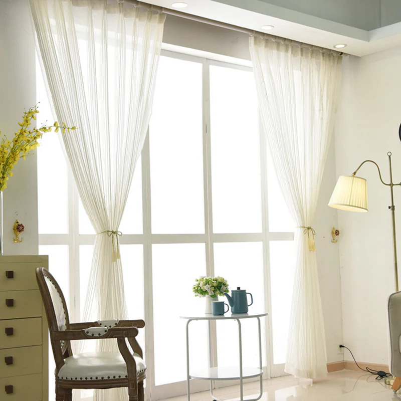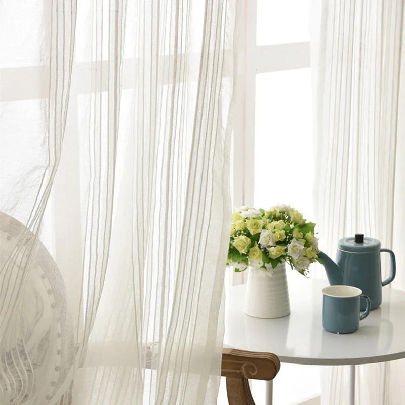 Voeg een moderne en luchtige uitstraling toe aan je ruimte met deze witte gestreepte transparante gordijnen!