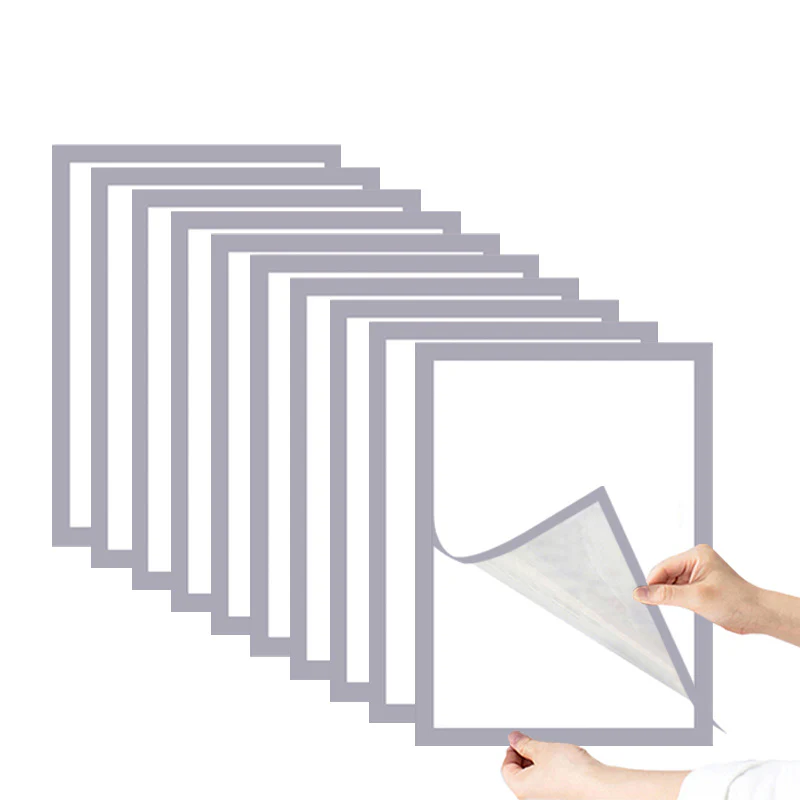 Deze set van 10 magnetische fotolijsten biedt een slimme en stijlvolle oplossing om jouw posters en foto’s eenvoudig te presenteren. Het herbruikbare ontwerp maakt het wisselen van inhoud moeiteloos, zonder de lijsten te beschadigen. Met hun klassieke stijl en verticale oriëntatie passen deze lijsten in elke ruimte, ideaal voor gebruik thuis of op kantoor. Verkrijgbaar in de kleuren goud, zilver en zwart, passen ze bij elk interieur en bieden ze een duurzame decoratieve oplossing.