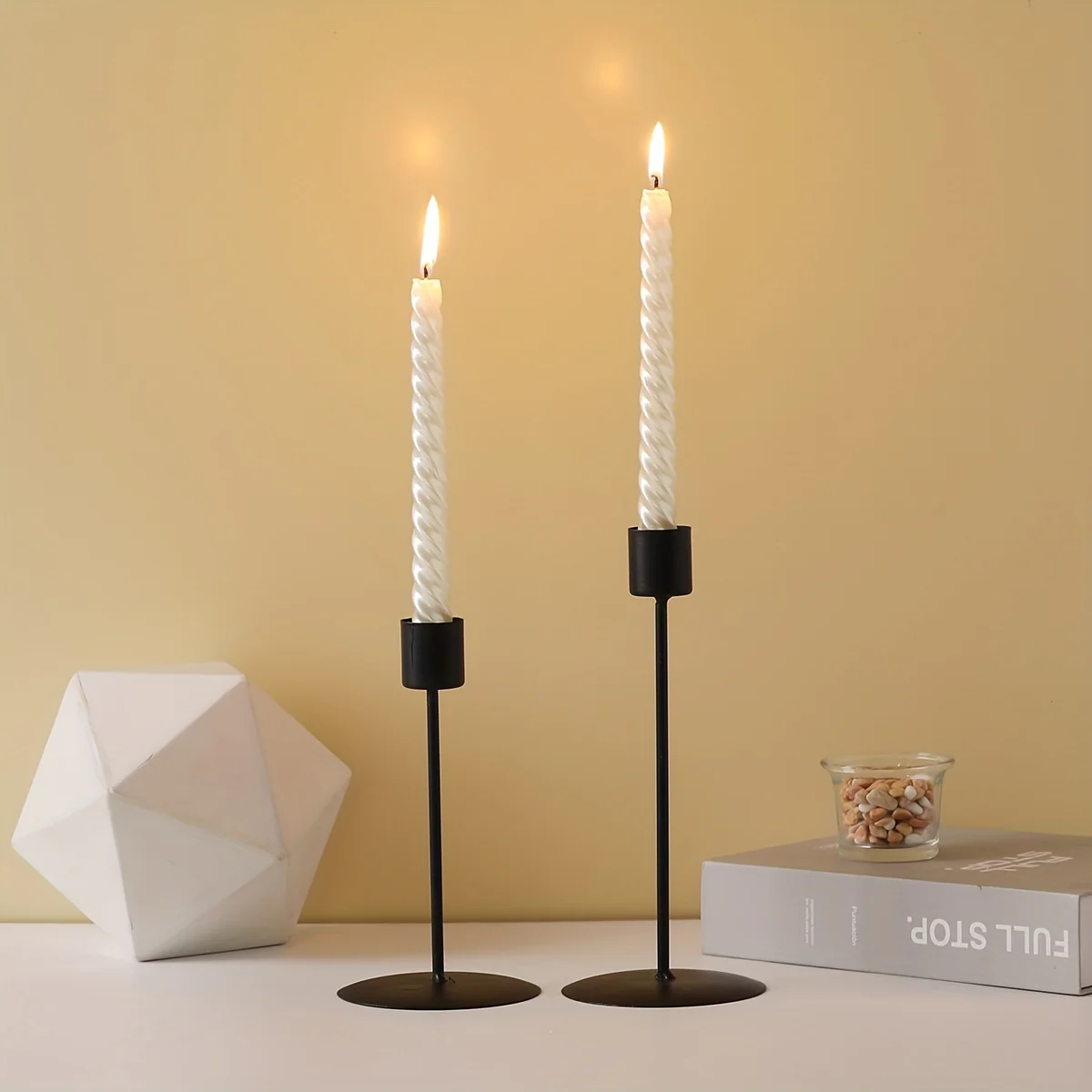 Creëer een romantische sfeer met deze prachtige set van 2 metalen kaarshouders. Perfect voor speciale gelegenheden zoals een diner bij kaarslicht, bruiloften, verjaardagen of feestdagen zoals Valentijnsdag en Kerstmis. Het minimalistische ontwerp past in elk interieur en voegt een vleugje elegantie toe aan je tafel of woonkamer.