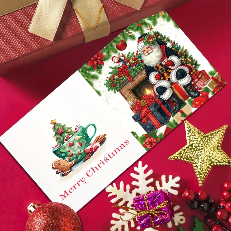 - Unieke kerstontwerpen: Elke kaart is versierd met feestelijke motieven, zoals de Kerstman en cadeaus, ideaal voor kerstwensen.