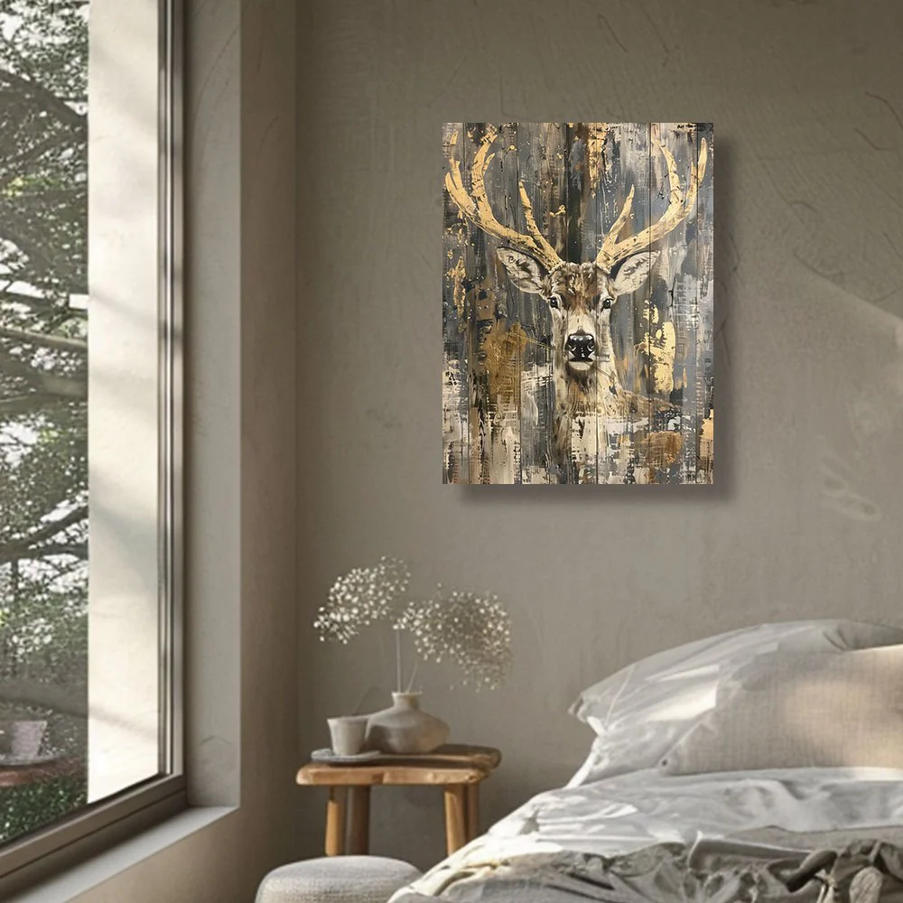 Breng een verfijnde en natuurlijke sfeer in je huis of kantoor met deze abstracte herten canvas kunst. Het rustieke ontwerp met een hertenprint geeft een luxueuze en tijdloze uitstraling, perfect voor elke moderne inrichting. Het schilderij is oningelijst en geschikt voor verschillende ruimtes zoals de woonkamer, slaapkamer of thuiskantoor.