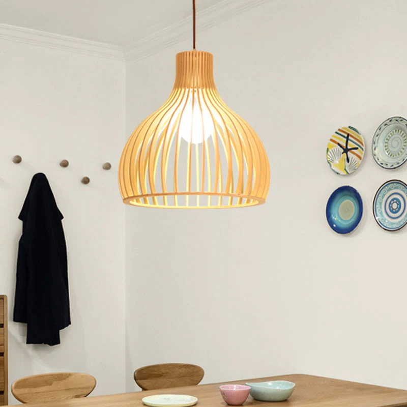 Aziatische Bamboe Hanglamp met Flared/Hemisphere/Onion Design 1 Licht Beige Klein/Groot Hangend Lichtarmatuur voor Eetkamer