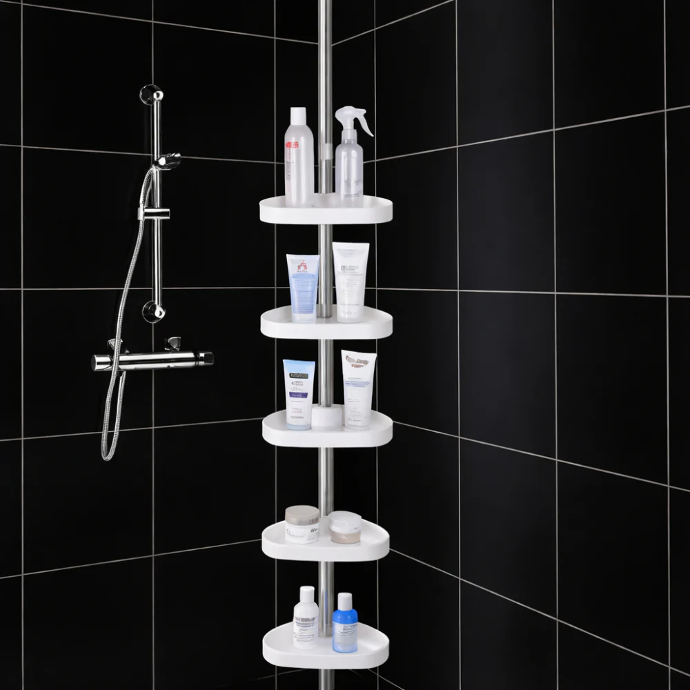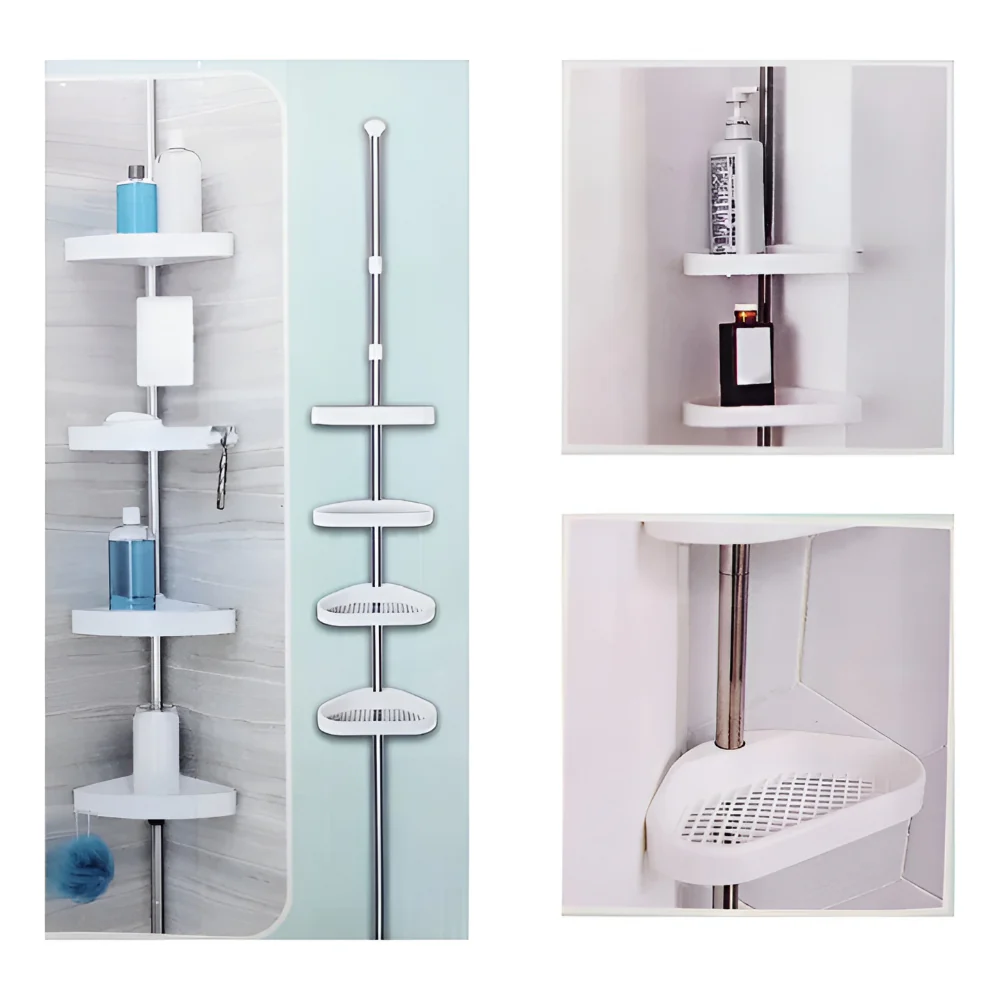 Dit badkamerrek helpt je badkamer netjes en georganiseerd te houden zonder extra ruimte in te nemen. Het slimme hoekrek badkamer past perfect in hoeken en biedt praktische opslag voor shampoo, zeep en andere verzorgingsproducten. Dankzij het verstelbare ontwerp en de stevige paal is dit badkamer opbergrek een handige oplossing voor een georganiseerde badkamer plank in kleine badkamers of douches.