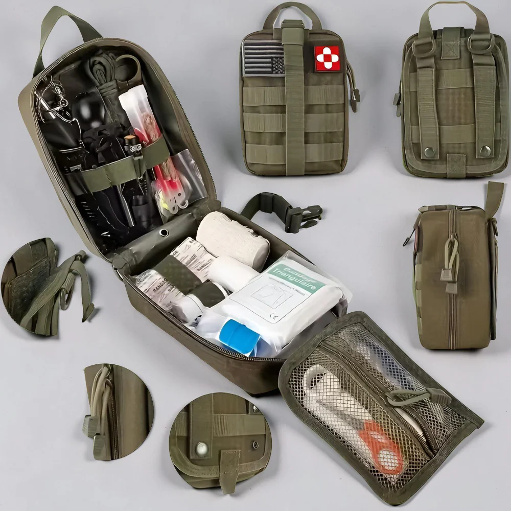 - Complete uitrusting: Bevat een combinatie van EHBO benodigdheden en survival accessoires voor outdoor gebruik.