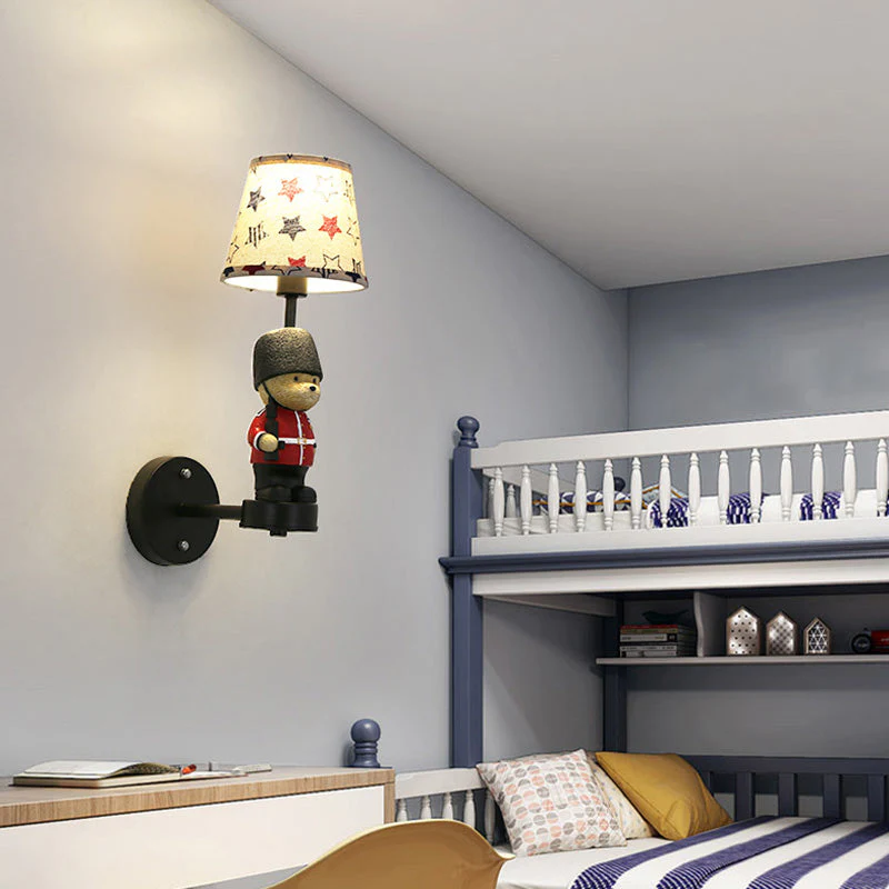 Empire Shade Wall Sconce – Kinderstijl Stoffen Wandlamp in Zwart met Trooper Deco