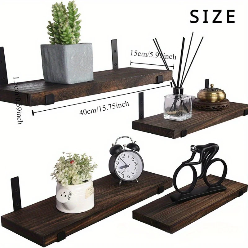 De GlamShelf set van 4 houten wandplanken biedt een stijlvolle en praktische oplossing voor opslag in verschillende kamers. Gemaakt van hoogwaardig hout en ontworpen in glam stijl, passen deze planken perfect in woonkamers, slaapkamers, keukens of badkamers. Met hun multifunctionele ontwerp kun je ze gebruiken om decoraties, planten of opbergruimte te bieden, terwijl ze een elegant accent toevoegen aan elke muur.