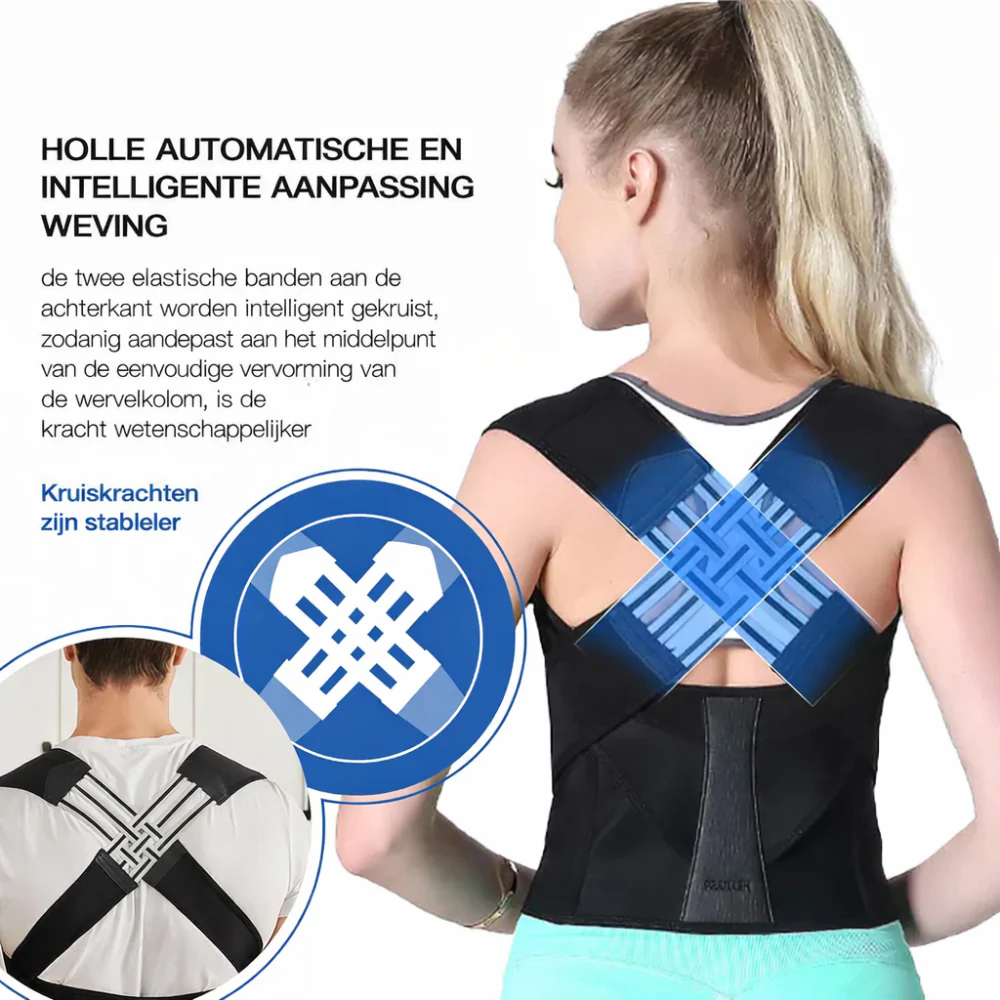 - Kruisband Ontwerp: Stabiliseert houding tijdens zitten, werken, wandelen