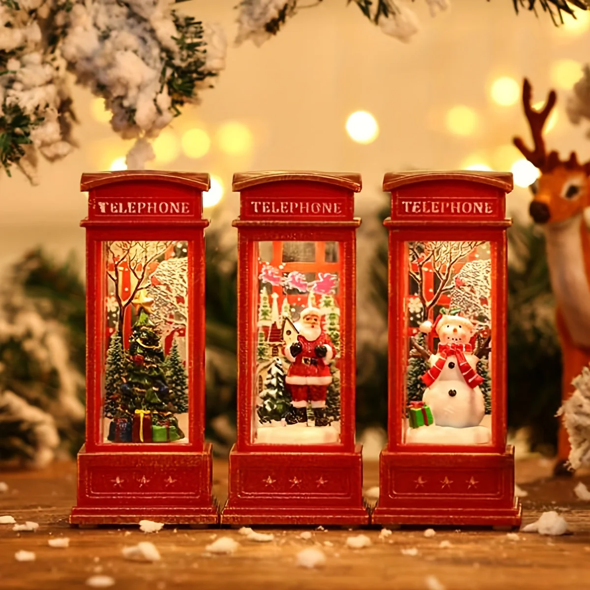 De KerstTelefoon Decoratieve Telefooncel is een sfeervolle toevoeging aan uw kerstdecor. Deze betoverende decoratie bevat een prachtig verlicht tafereel met de Kerstman, een sneeuwpop en een feestelijke kerstboom. Met zijn batterij-aangedreven ontwerp kunt u de telefooncel overal in huis plaatsen, zonder gedoe met kabels. De warme, sfeervolle verlichting creëert een gezellige en feestelijke ambiance voor de feestdagen.
