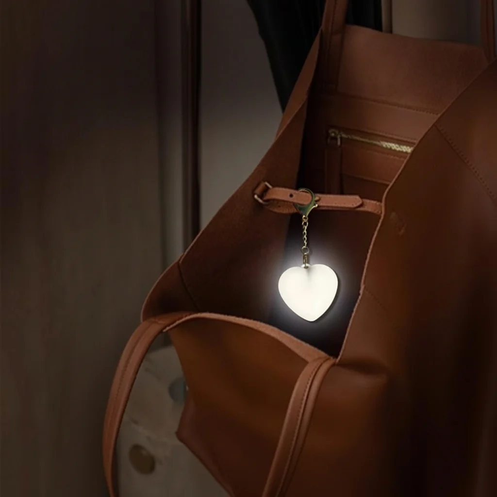 - Stijlvol en Charmant Ontwerp: Het schattige ontwerp van de lamp voegt een speelse en elegante uitstraling toe aan je tas en accessoires.
