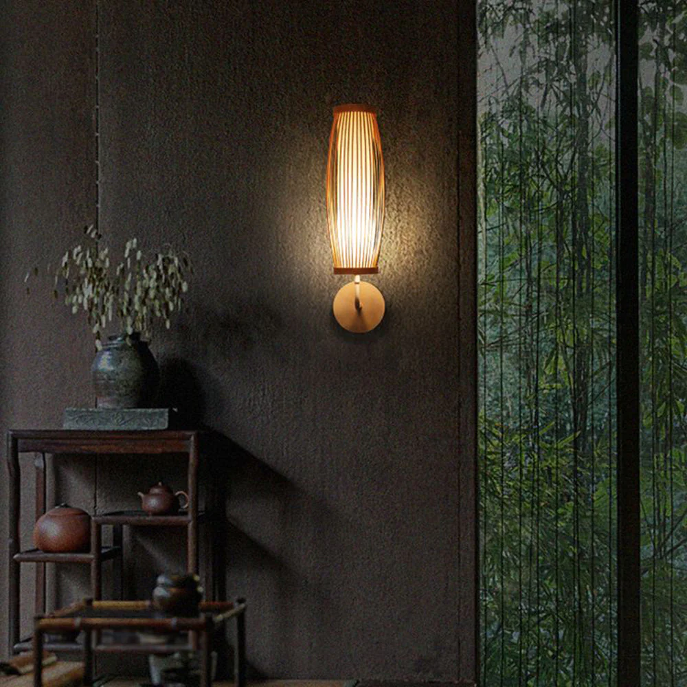 Elegante Japanse LED Wandlamp van Bamboe voor een Moderne en Rustige Sfeer