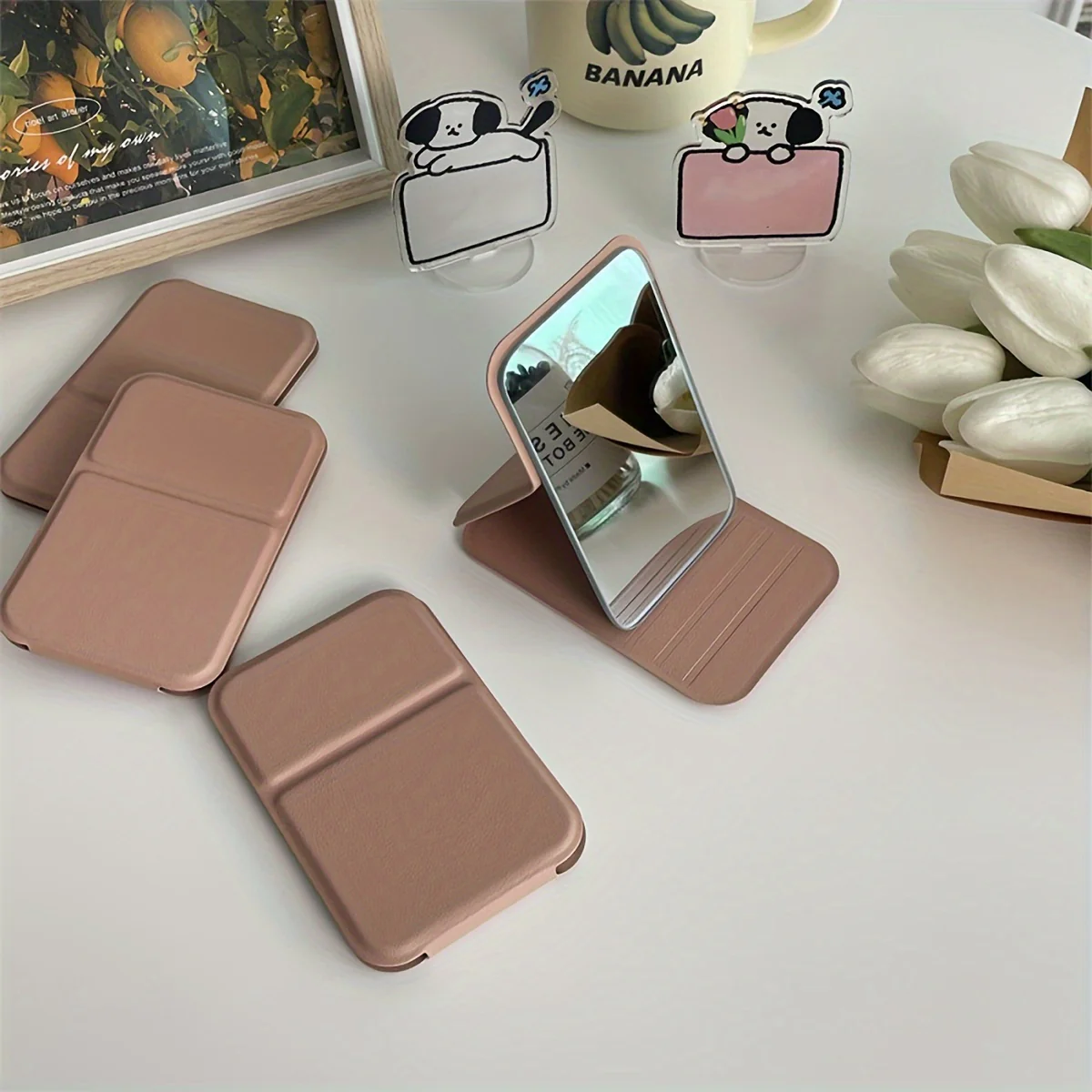 Deze opvouwbare mini make-up spiegel is ideaal voor studenten of iedereen die een compacte en elegante spiegel nodig heeft voor dagelijks gebruik. Het PU lederen frame geeft de spiegel een luxe uitstraling, terwijl het opvouwbare ontwerp het gemakkelijk maakt om hem overal mee naartoe te nemen. Plaats de spiegel op je bureau of kaptafel voor snel bijwerken van je make-up of dagelijkse verzorging, zonder gedoe met stroom of batterijen. Een must-have voor elke beauty-liefhebber!
