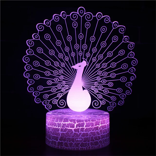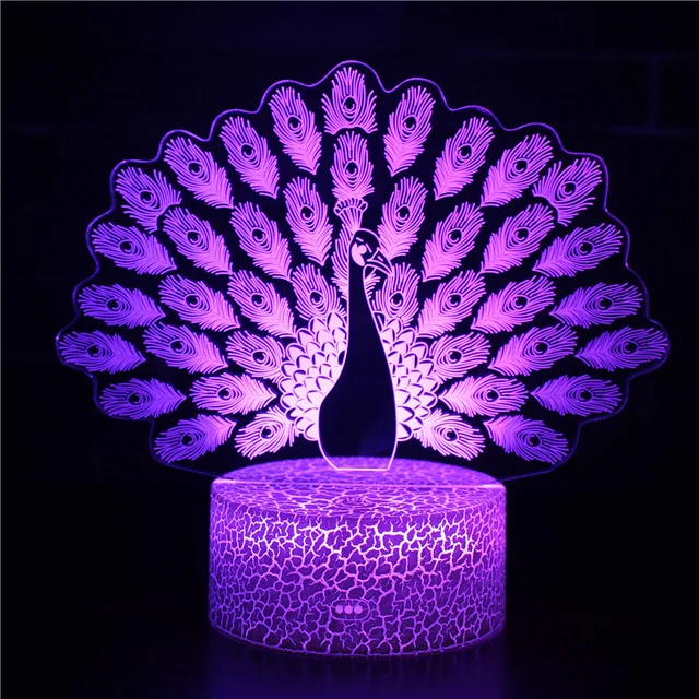 PeacockGlow – LED Nachtlamp met 3D Effect en Kleurenwissel, Decoratieve Tafellamp voor Slaapkamer & Kinderkamer