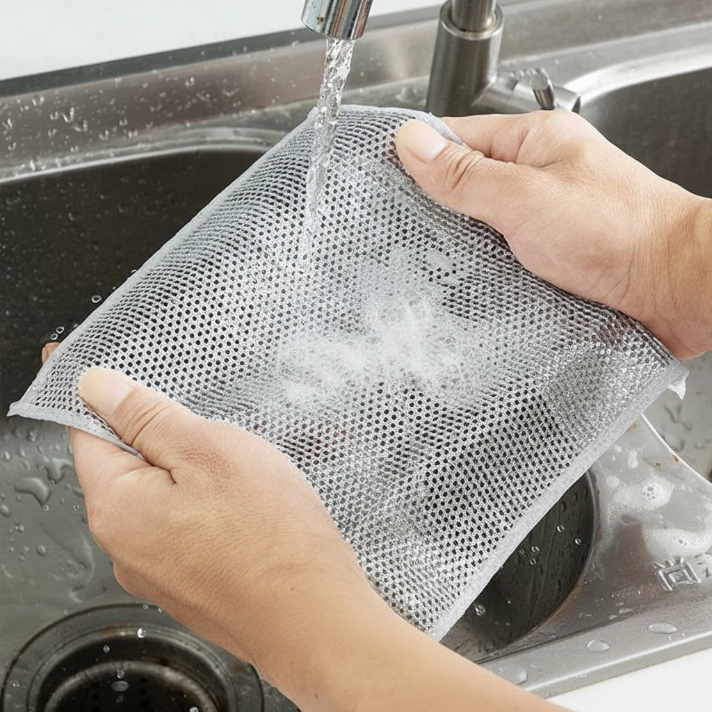 Ontdek hoe eenvoudig schoonmaken kan zijn met onze niet-krassende nylon schoonmaakdoeken. Deze doeken reinigen moeiteloos zonder strepen of schade en zijn ideaal voor keukenreiniging, afwas en oppervlakteonderhoud. Dankzij hun zachte structuur drogen ze snel en blijven ze fris, perfect voor het schoonmaken van borden, pannen en werkbladen.