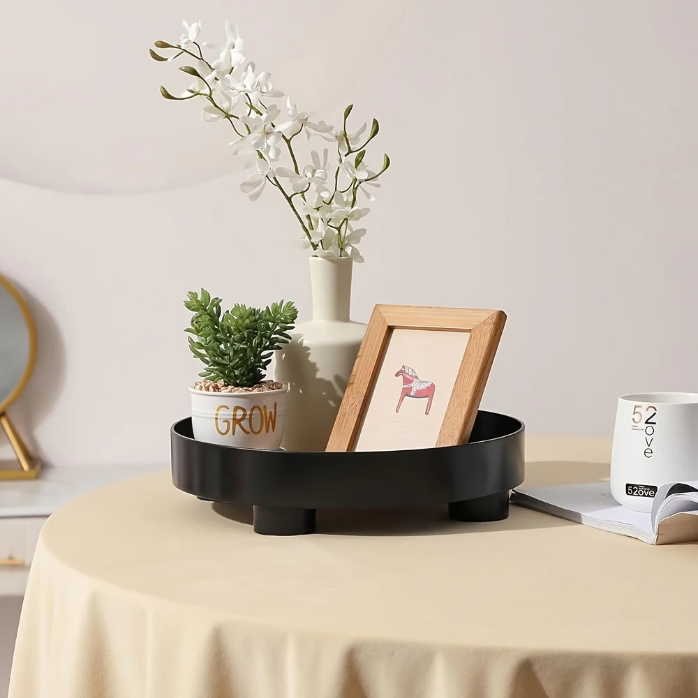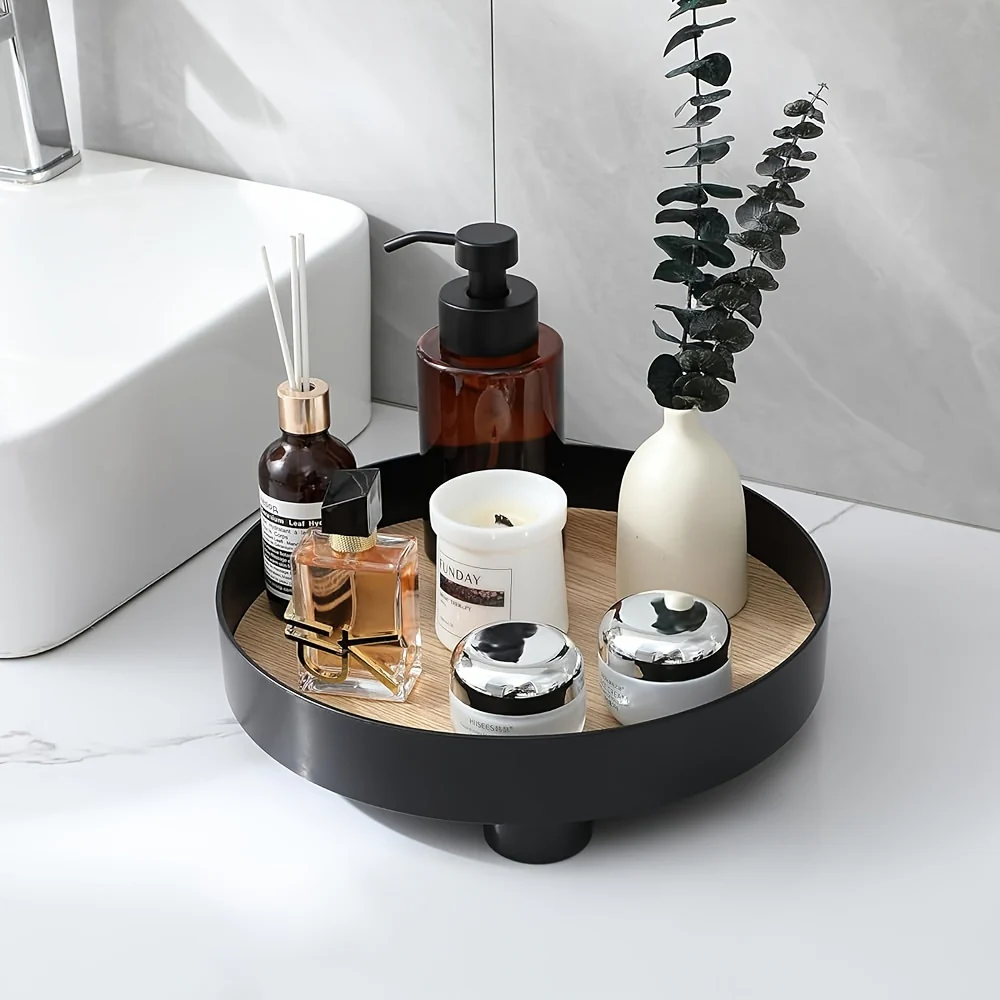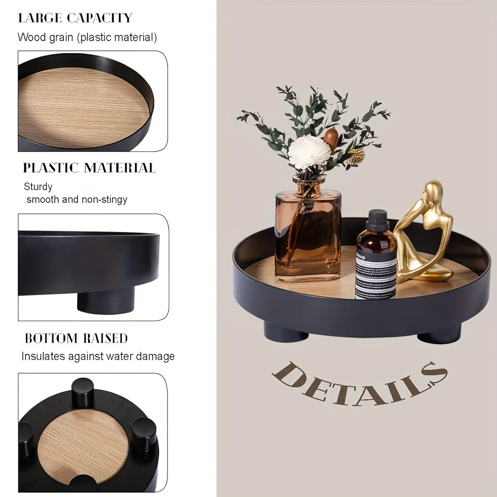 - Modern Ontwerp: Ronde schaal met een stijlvolle houten afwerking voor een eigentijdse look.