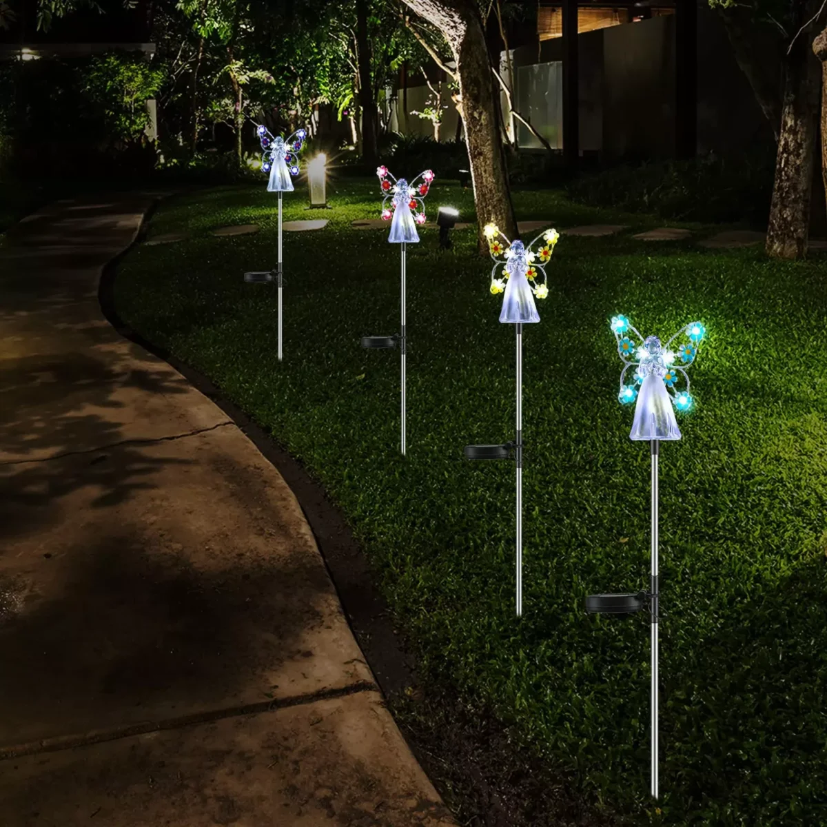 - Decoratief engelenontwerp: De subtiele vleugels en zachte LED-verlichting geven een spirituele en elegante uitstraling aan elke buitenruimte.