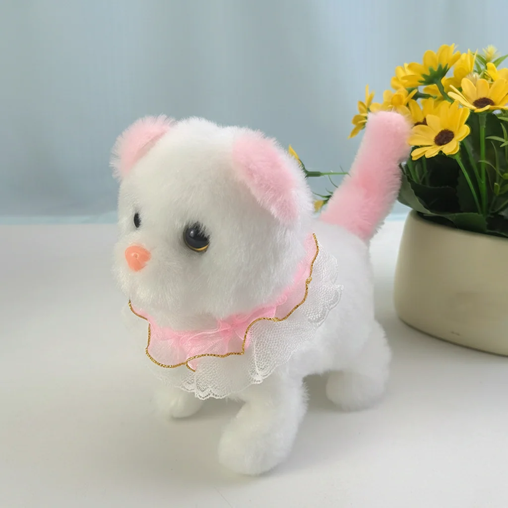 - Levensechte bewegingen: Het katje loopt, miauwt en kwispelt voor een speelse en realistische interactie.