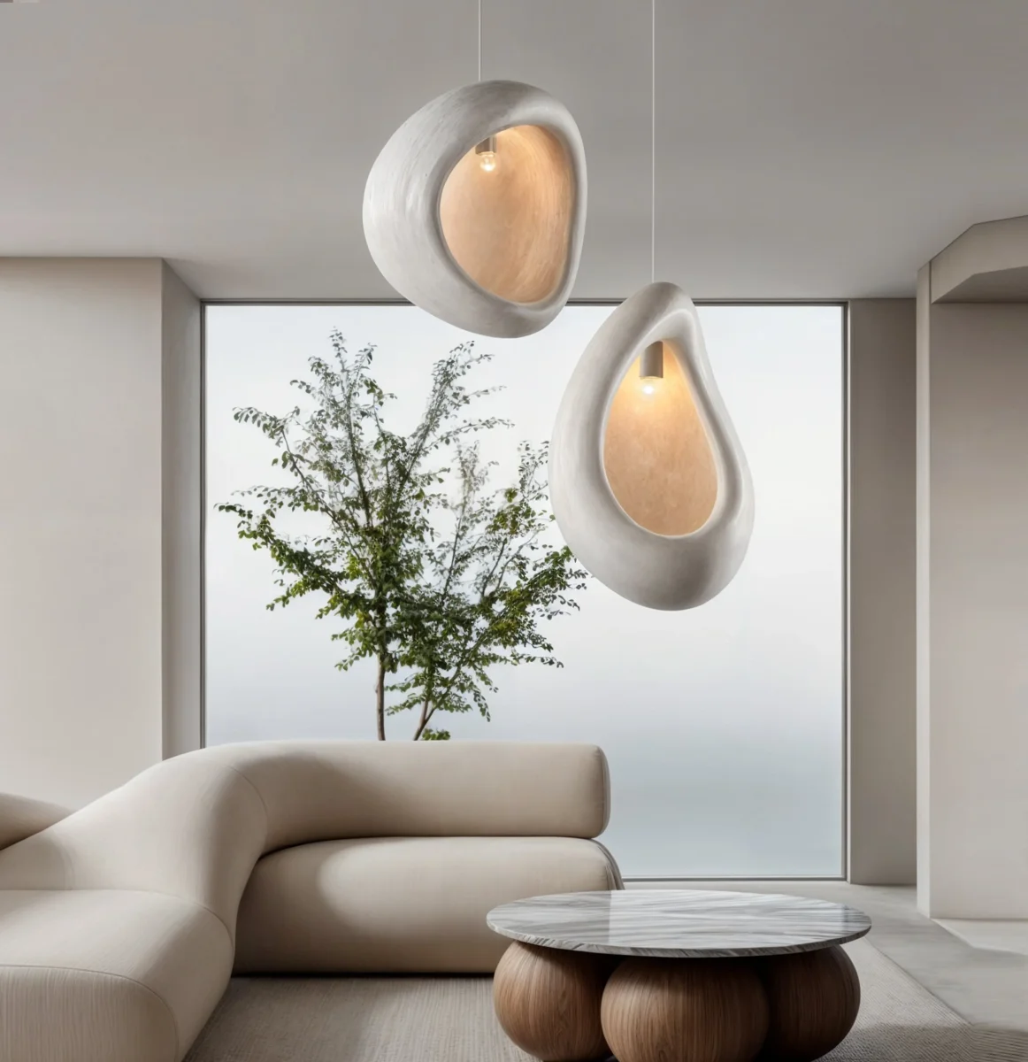 Deze prachtige hanglamp, gemaakt van hoogwaardig hars, heeft een organische vorm die doet denken aan een holle rots. Het ontwerp zorgt voor een warme en uitnodigende gloed, ideaal voor het creëren van een sfeervolle ambiance in je huis.