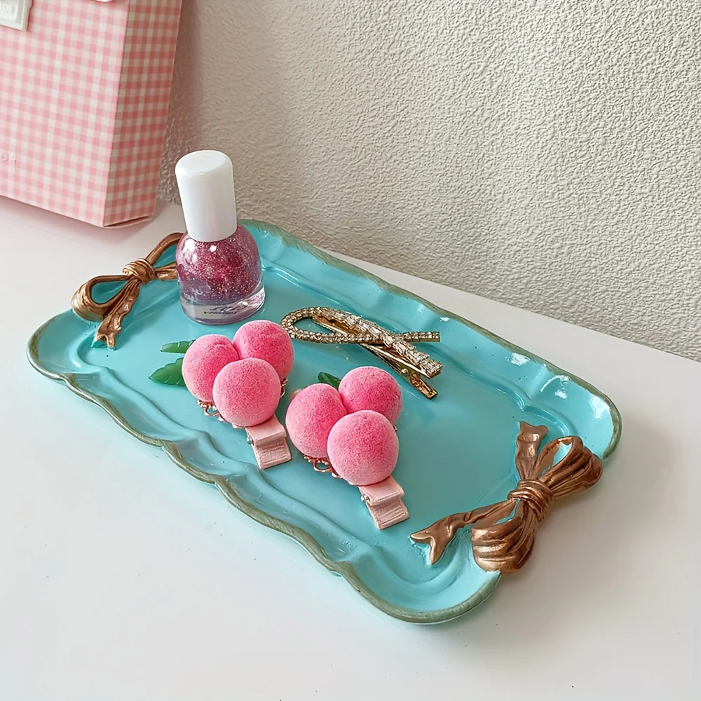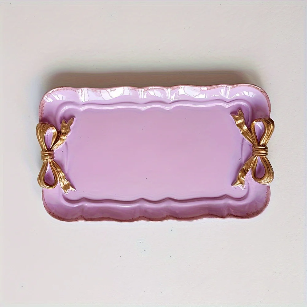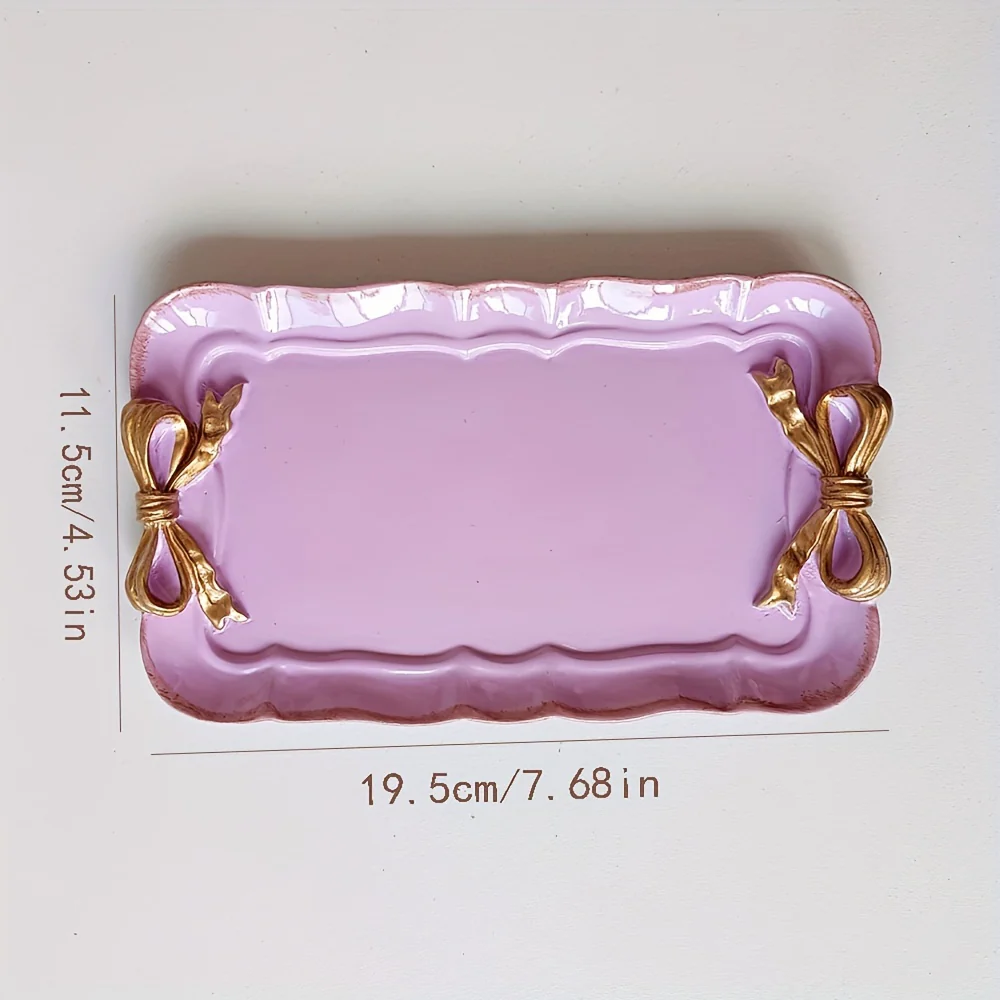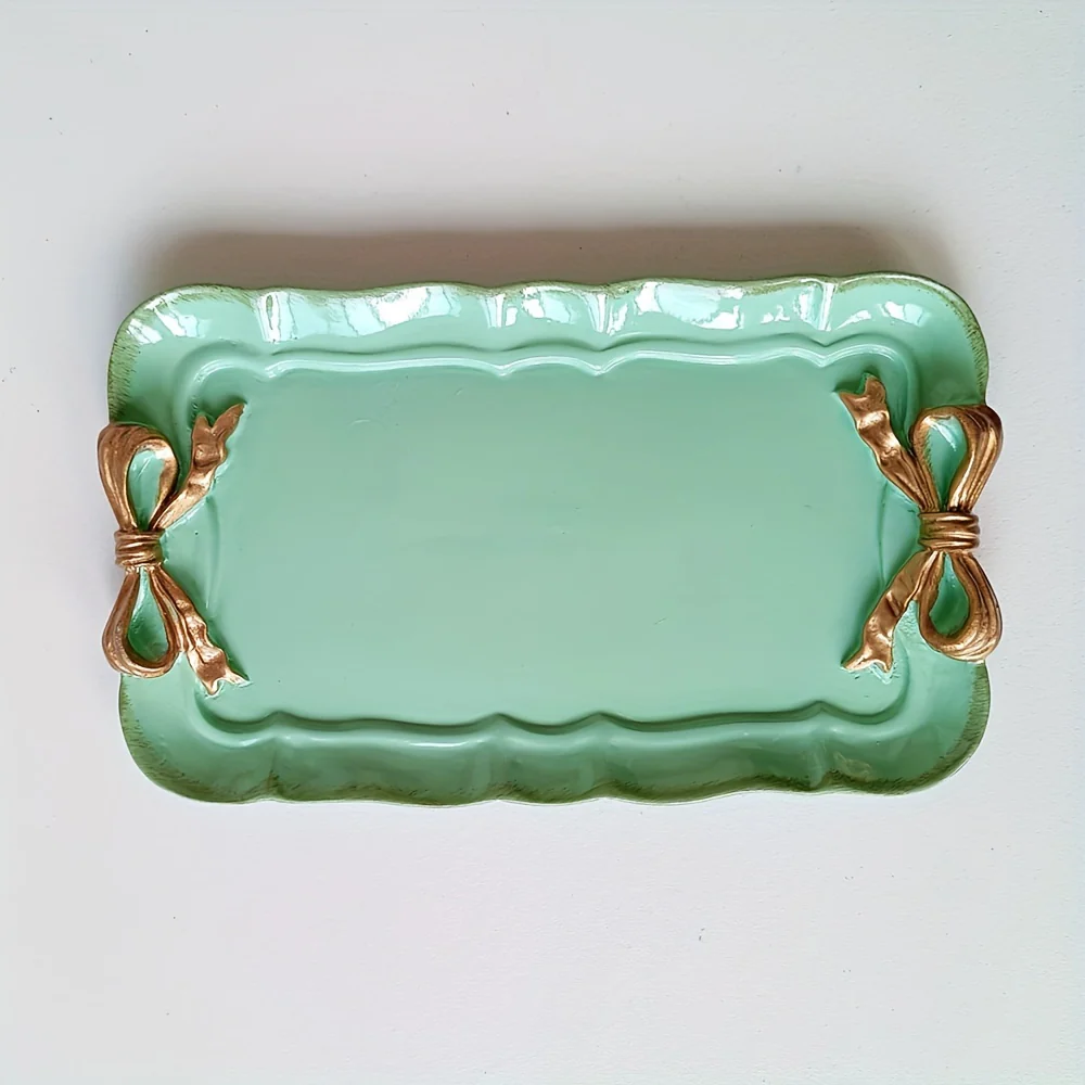 Het VintageServe-Dessertbord is een rechthoekige snoepschaal, gemaakt van duurzame hars en voorzien van een charmante striksluiting. Dit veelzijdige bord is ideaal voor het serveren van desserts, fruit, of als decoratieve display voor sieraden. Het stijlvolle en klassieke ontwerp maakt het een opvallend element op de tafel.