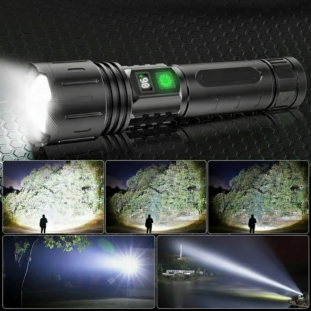 Verlicht elke omgeving met deze LED zaklamp, ontworpen voor krachtige prestaties in het donker. De tactische zaklantaarn biedt tot 100.000 lumen helderheid, meerdere lichtstanden en een indrukwekkend bereik. Dankzij het stevige aluminium ontwerp en de waterdichte zaklamp behuizing is deze oplaadbare zaklantaarn ideaal voor kamperen, wandelen, noodgevallen en dagelijks gebruik.