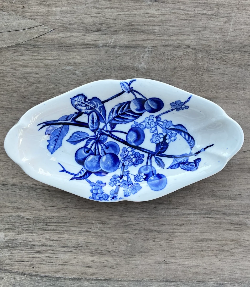 Dit zuurschaaltje heeft een traditionele Engelse vormgeving en is een mooi voorbeeld van het vakmanschap en ontwerp uit lang vervlogen tijden. Het is een decoratief en functioneel schaaltje. Het blauw witte decor met een afbeelding van kersen maakt dat het heel makkelijk combineert met ander servies.